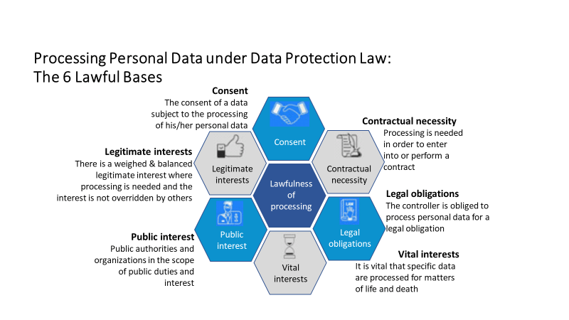 It is increasingly important for Agile as a technology-solution provider with an App, System and Site in the insurance claims-sector to have appropriate and lawful justification for the different kinds of data processing which takes place. Using the GDPR as our benchmark, we have reviewed the six kinds of possible legal justification that could apply to the processing of Personal Information. They are summarized as followed in the infographic below: